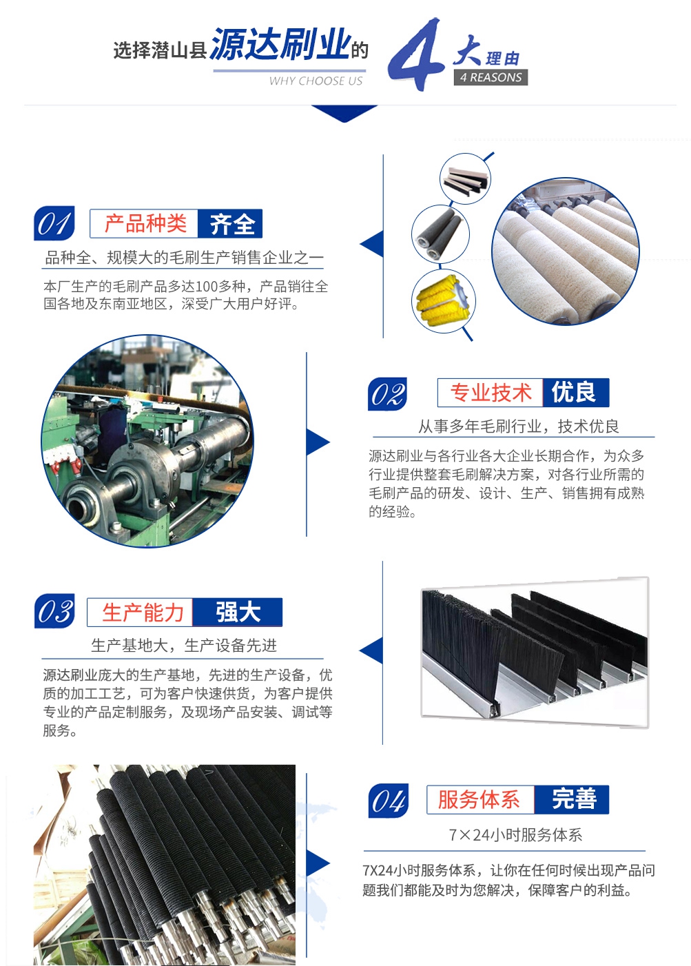 主要生產加工毛刷輥、毛刷條、工業毛刷、環衛刷、鋼絲刷等各類毛刷。